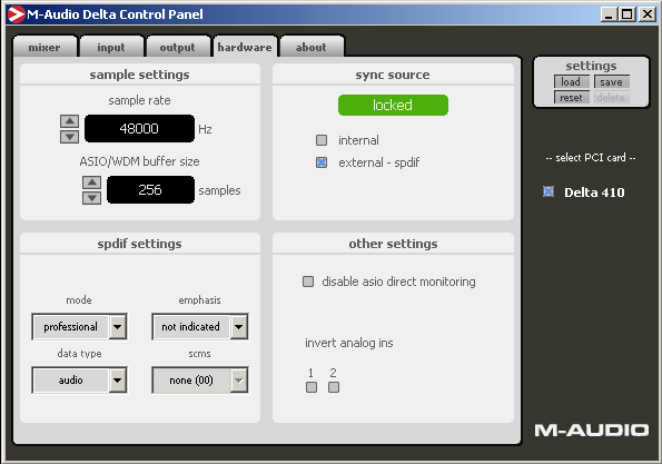 DTMをやっている友達からDELTA 410という2in8outのオーディオカードをもらってきました。古いジャズは順次CD化されていますが、今でもレコードでないと聞けないものも多く、聞くたびにレコードを鳴らすわけにもいかず、私の場合は48KHzのDATに保存して聞いていました。その溜まったDATのテープをデジタル信号のままPCへ送り、最終的にプライベートCDにして永久保存しようと思います。写真ではたくさんのOUT端子が見えますが、使用する端子はSPDIFのINと、D/Aコンバータを介した音をモニタリングするためのアナログOUT(2ch)のみです。このカードのD/Aコンバータにちょっと期待しています。終わったらDATはそろそろ退役させたいです。